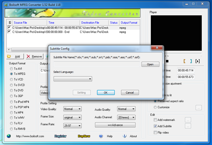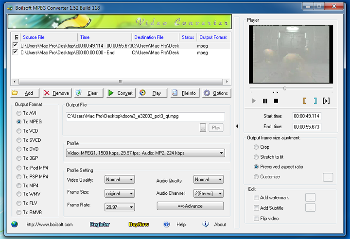 MPEG Converter , a powerful MPEG (MPEG-1, MPEG-2, MPEG-4) converter which lets you easily convert MPEG to AVI, to FLV, to MPEG, to MP4, to WMV, to 3GP, to RM, to RMVB, to VCD/SVCD/DVD, to PSP MP4, to iPod MP4, to FLV, etc. Batch convert your MPEG video to other formats professionally with Boilsoft MPEG Converter.